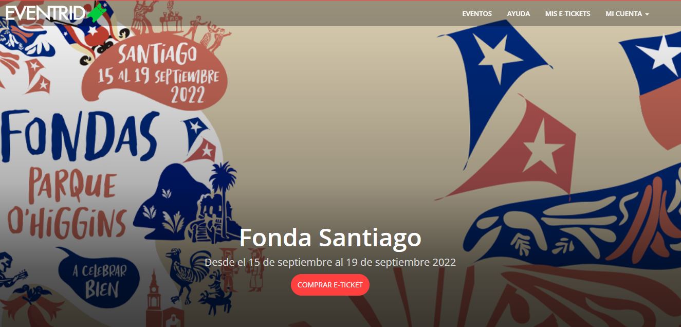 Para comprar las entradas, puedes ingresar a la plataforma www.eventrid.cl/eventos/fondasantiago/2022 y realizar la transacción de forma online. Así recibirás el e-ticket sin la necesidad de hacer filas.