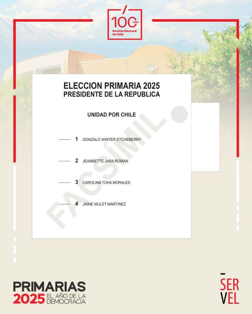 En la papeleta dirán presente los siguientes candidatos y candidatas: Gonzalo Winter, Jeannette Jara, Carolina Tohá y Jaime Mulet.