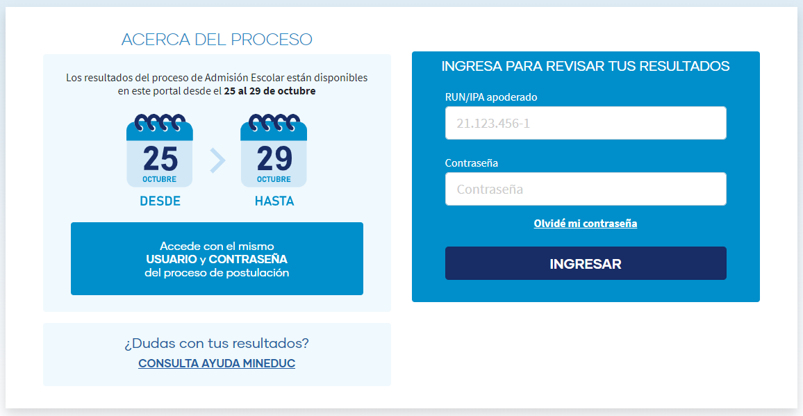 Para conocerlos, se debe acceder al sitio web sistemadeadmisionescolar.cl e ingresar en el banner que dice Sistema de Admisión Escolar Online, precisamente en el botón rojo de Ver Resultados.