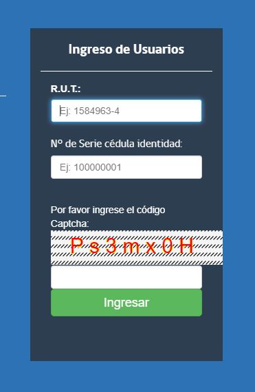 • Continuando con el proceso, las y los postulantes deben ingresar su RUT, número de serie del carnet y resolver el captcha correspondiente.