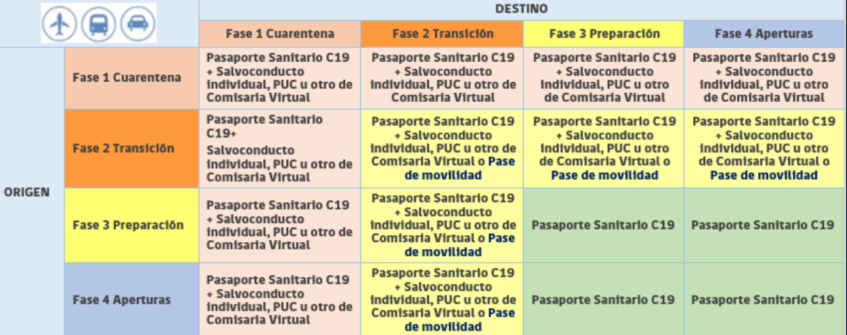 Frente a esto último, los viajes interregionales están permitidos solo si la comuna de inicio y destino están en Transición o superior. Esto debe realizarse con el Pase de Movilidad junto al Pasaporte Sanitario que se obtiene en c19.cl