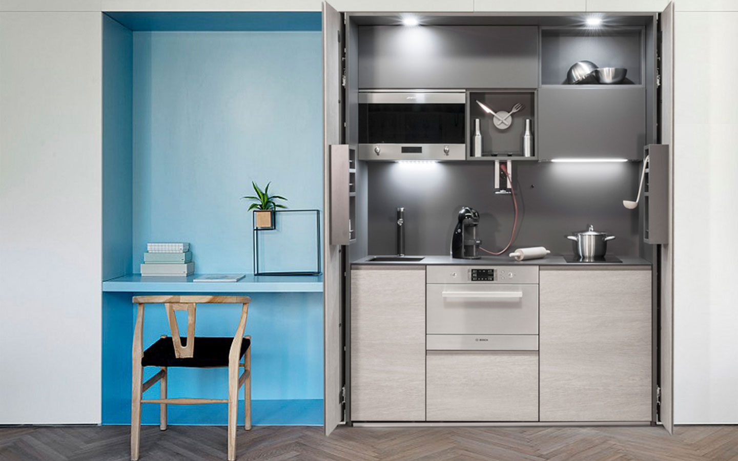 Se refiere a una pequeña cocina dentro de un espacio integrado, no independiente como una cocina típica. Por lo general están equipadas con artefactos de última generación.