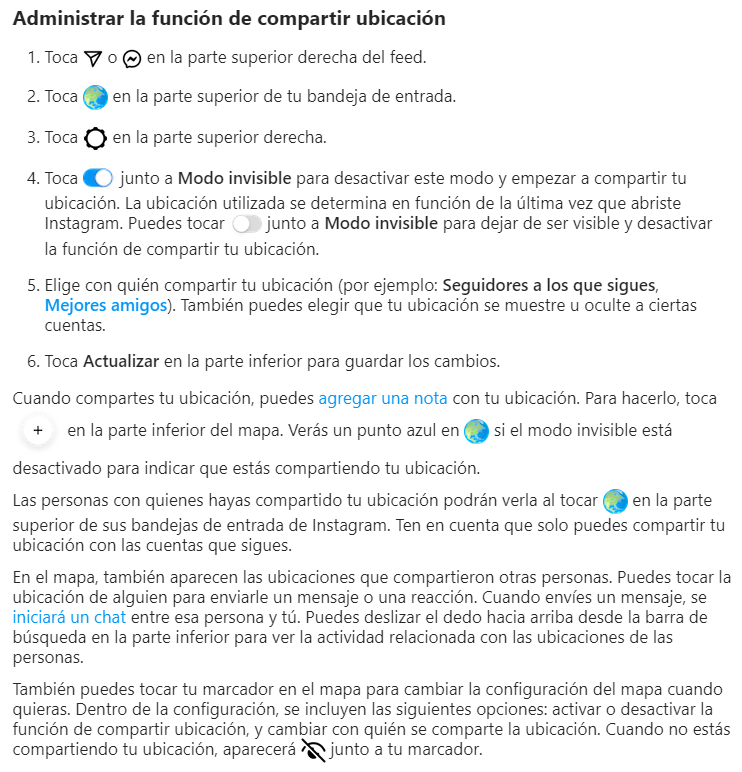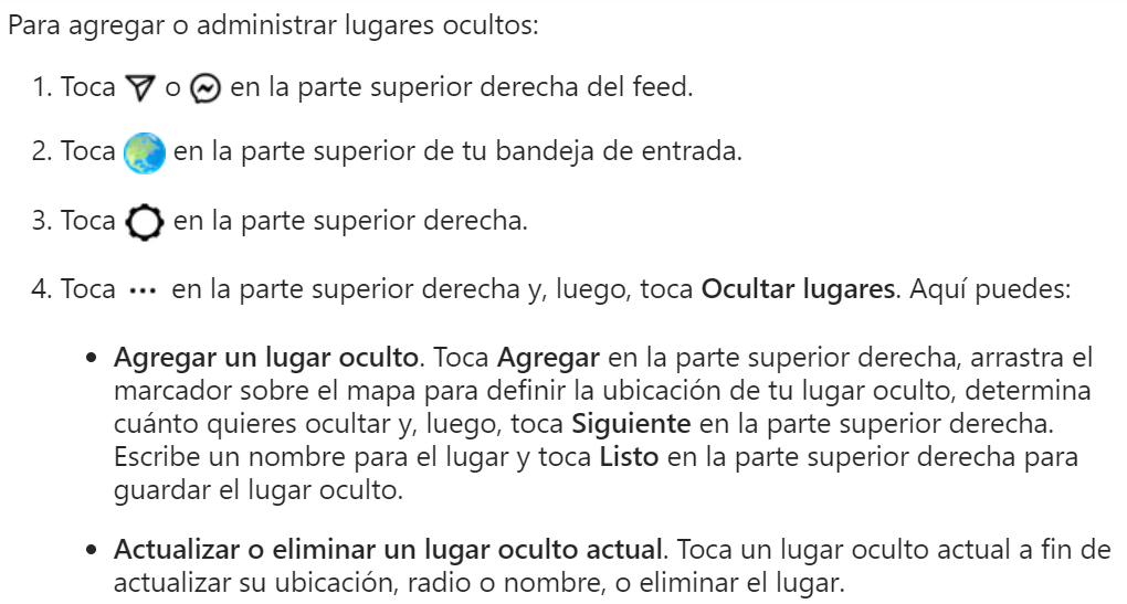 También, la red social detalló que se pueden ocultar tres lugares como máximo y mantener la opción Modo invisible desactivada.