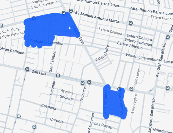 Quilicura: el tramo superior de 10:00 horas a 16:00 horas; el tramo inferior de 14:30 horas a 20:30 horas.