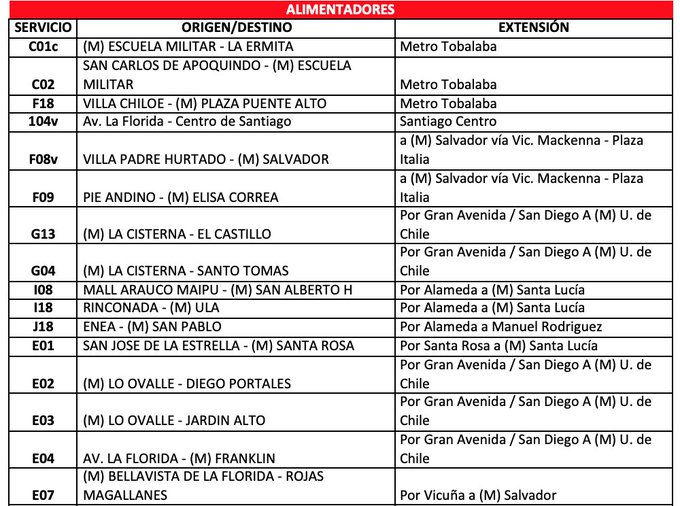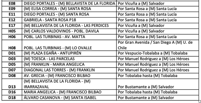 Recorridos E09 – E11- E12 – H06 – E01 – I08 y 118 extienden su operación hasta Metro Santa Lucía. Además se crea el Recorrido 104 que circulará por Av. La Florida, Macul, Agrícola, V. Mackenna y Alameda hasta Metro Santa Lucía.