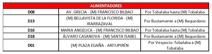 Recorridos D08 – D16 y D01 extienden su cobertura hasta la estación de Metro Tobalaba y los Recorridos D13 y D18 hasta Baquedano.