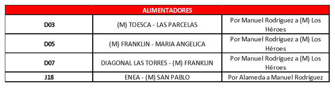 Servicios D03 – D05 – D07 y J18 conectan con estación Los Héroes ya que extienden sus recorridos por Avenida Manuel Rodríguez.