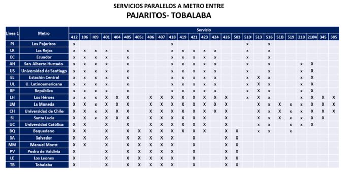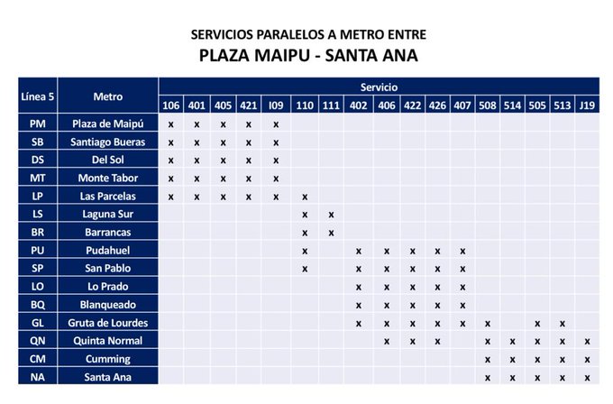 Revisa los servicios que te apoyarán en el tramo Pajaritos – Tobalaba.