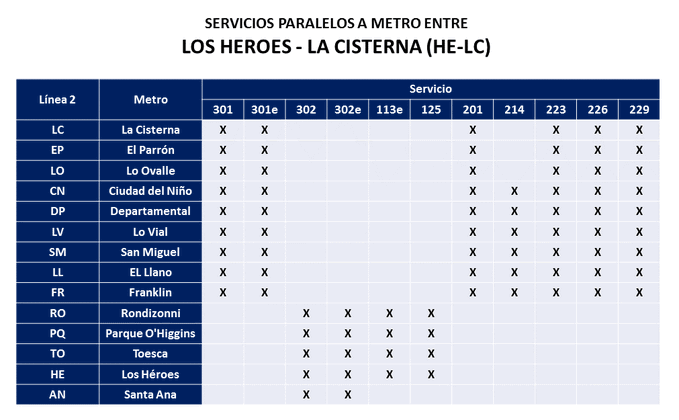 Si debes movilizarte en el tramo entre Santa Ana y La Cisterna, revisa los recorridos de apoyo.