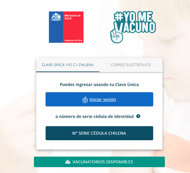 1. Ingresar al sitio mevacuno.gob.cl e iniciar sesión con la clave única o con el número de serie de la cédula de identidad
