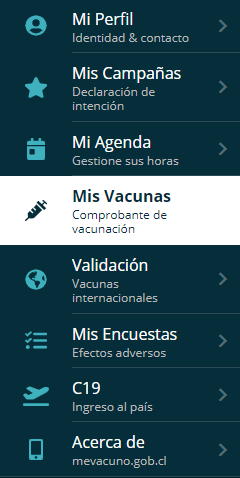 2. Ir hacia la pestaña izquierda que dice "Mis Vacunas"