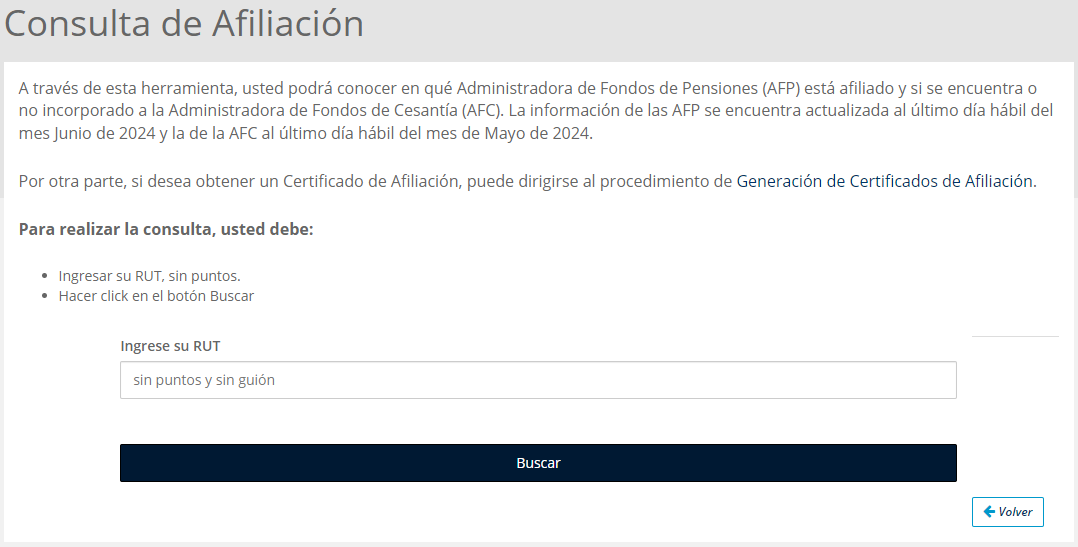 Si no sabes en qué Administradora de Fondos de Pensiones (AFP) te encuentras afiliado o afiliada, puedes consultar con tu RUT en este enlace o haciendo clic en la imagen a continuación.