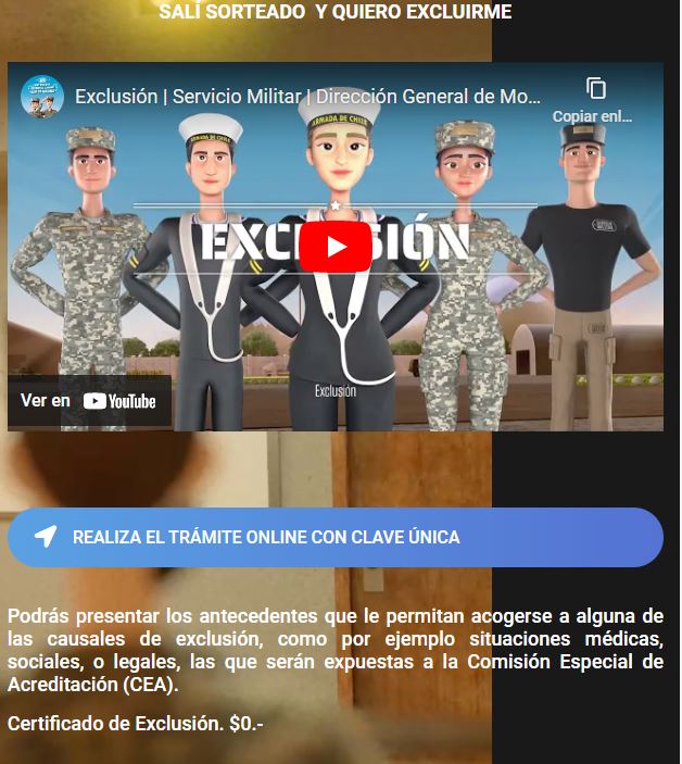 En el mismo sitio web Serviciomilitar.cl, puedes concretar el proceso de exclusión mediante el uso de Clave Única.