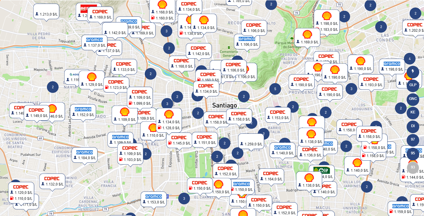 Para comparar los valores revisa el mapa de Bencina En Línea de la Comisión Nacional de Energía (CNE). Haz zoom hasta encontrar el sector deseado y luego presiona en alguna estación de servicio.