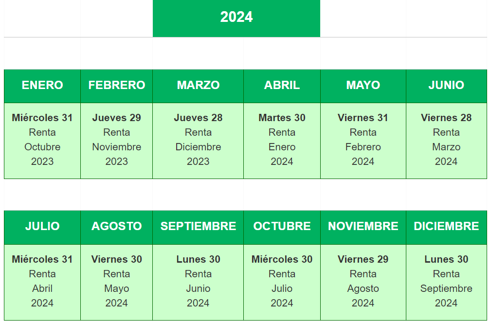 El pago mensual es un adelanto del pago anual y se cancela el último día hábil del mes (excepto en septiembre y diciembre), y se realiza con un desfase de tres meses. Sence