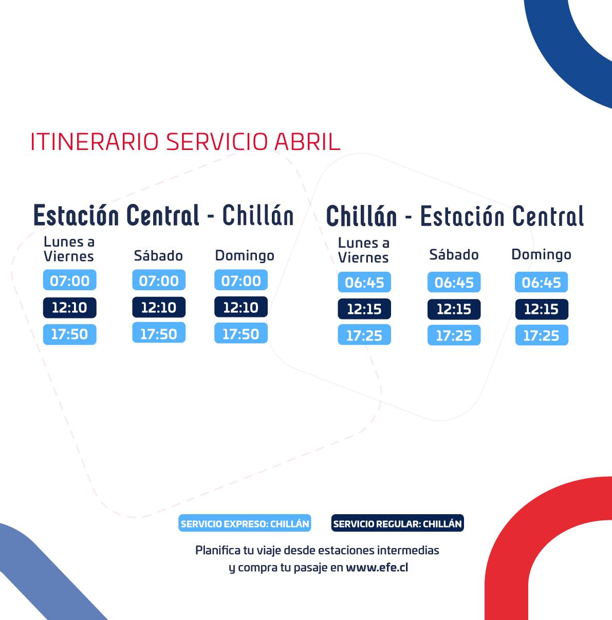 Este jueves 18 de abril inicia actividades el tren rápido Santiago-Chillán que conectará a las dos ciudades en un recorrido de poco más de cuatro horas. Revisa los horarios, precios y recorrido de este nuevo tramo de transporte.