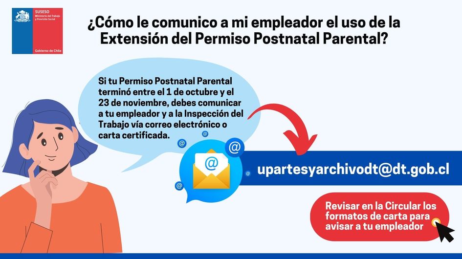Paso 2. Informar a la Inspección del Trabajo mediante correo electrónico (upartesyarchivodt@dt.gob.cl) o carta certificada para dar curso al beneficio.