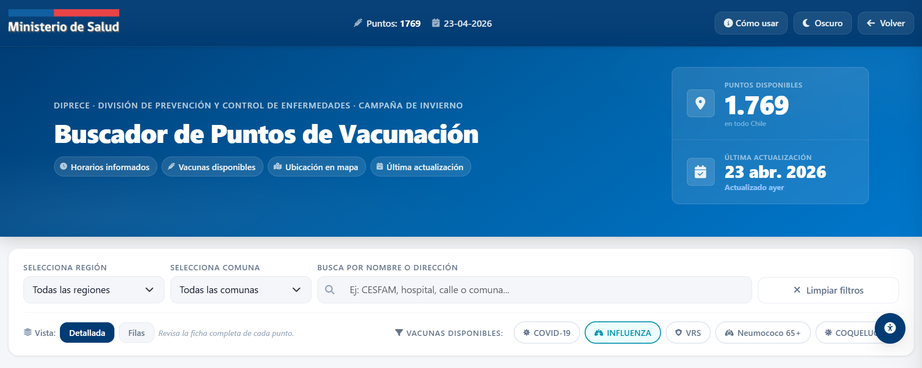 Para facilitar el acceso está habilitado un Buscador de Puntos de Vacunación en que que puedes encontrar el centro más cercano a ti.