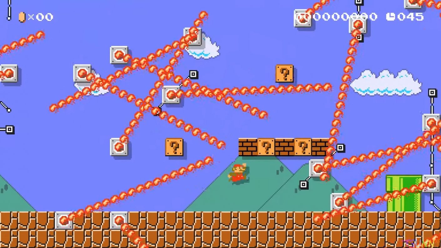 Este infierno está disponible en Super Mario Maker 2, un título en el que los usuarios crean sus propias etapas en cualquiera de los formatos de la franquicia. Es el mismo recorrido que existe al inicio del juego original, pero está infestado con más de 100 barras de fuego giratorias.
