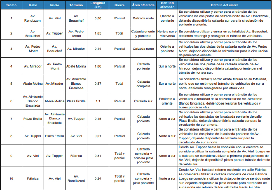 - Corte de tránsito desde las 14:00 horas del viernes 10 de noviembre hasta las 05:00 horas del domingo 12 de noviembre.