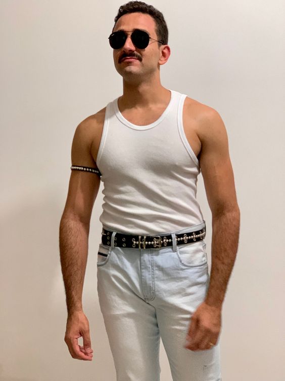 Con unos jeans ajustados, una camiseta sin mangas (preferentemente blanca), brazaletes y un bigote falso, lograrás el look del icónico vocalista de Queen. Puedes llevar también una chaqueta amarilla o una toalla en los hombros.