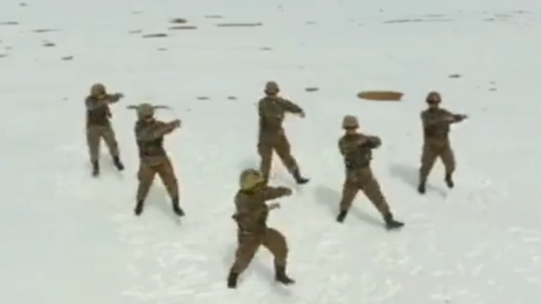 A 5.200 metros de altura: Soldados sorprendieron con coordinado baile en la nieve