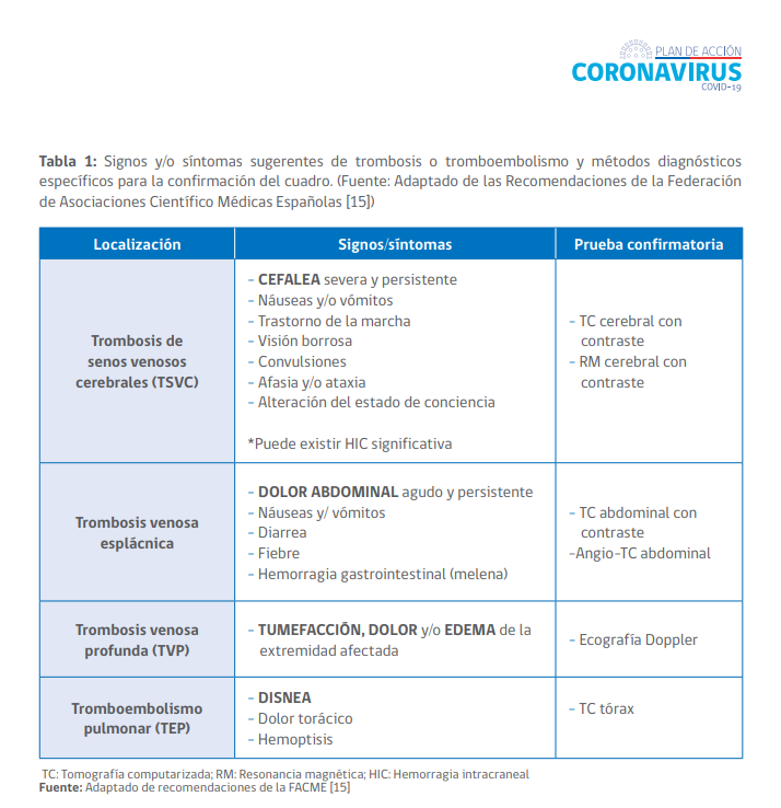 También, se indicó que "los casos de STT suelen presentarse entre 4-30 días posteriores a la administración de vacunas de adenovirus (AstraZeneca o Janssen), con signos y/o síntomas de tromboembolismo".