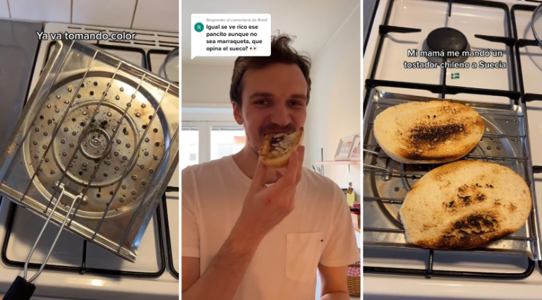 “Mi mamá me mandó un tostador chileno a Suecia”, relató, mientras mostraba el artículo que había recibido y explicaba que encontró un pan que se parecía bastante a la marraqueta para darle un primer uso. “Como en casa”, añadió.