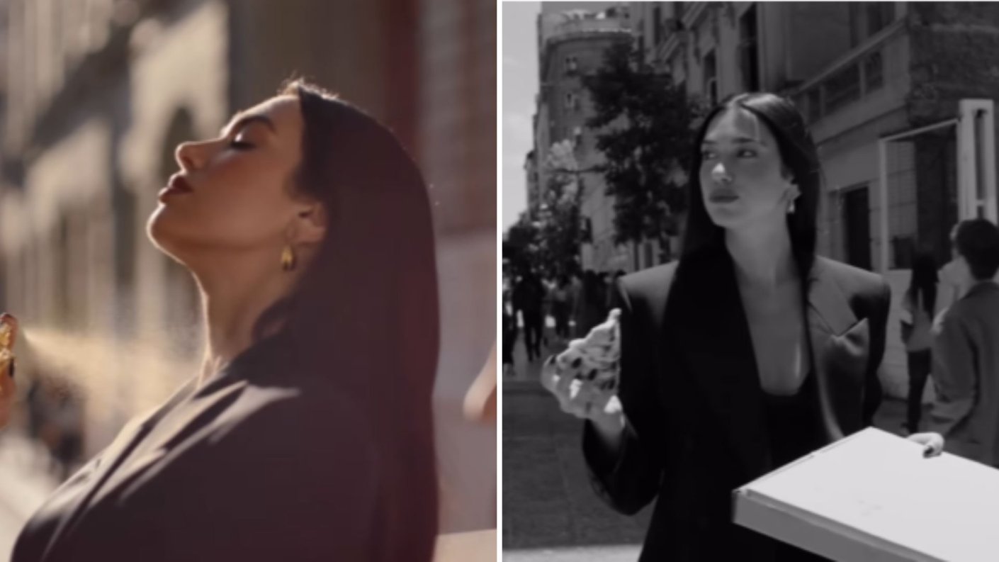 Las imágenes corresponden a la campaña de un nuevo perfume y muestran a Dua Lipa recorriendo tanto el centro de Santiago como los paisajes del desierto de Atacama.