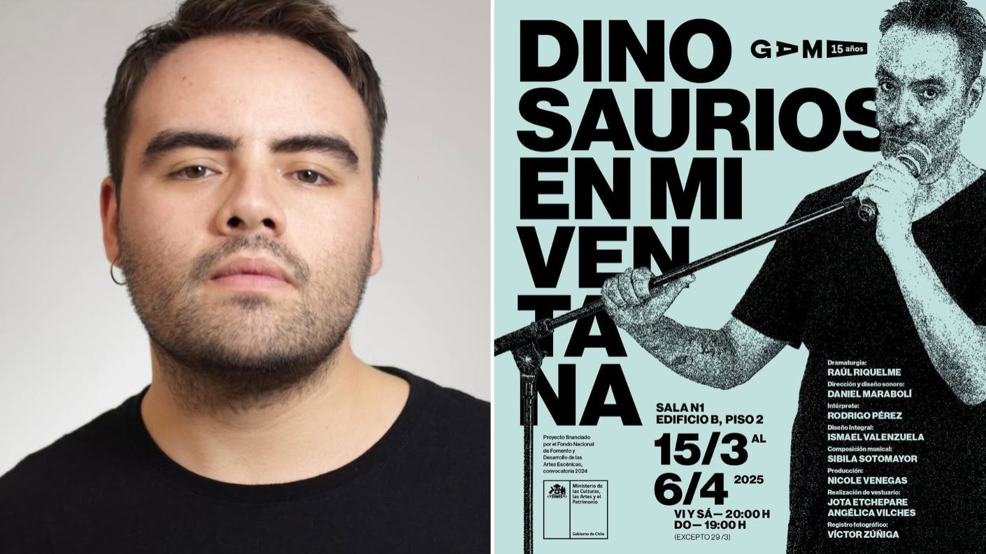 Este sábado 15 de marzo se estrena en el Centro Cultural Gabriela Mistral la obra de teatro Dinosaurios en mi ventana, un inédito proyecto sonoro-performático escrito por el dramaturgo Raúl Riquelme y dirigido por el creador Daniel Marabolí.