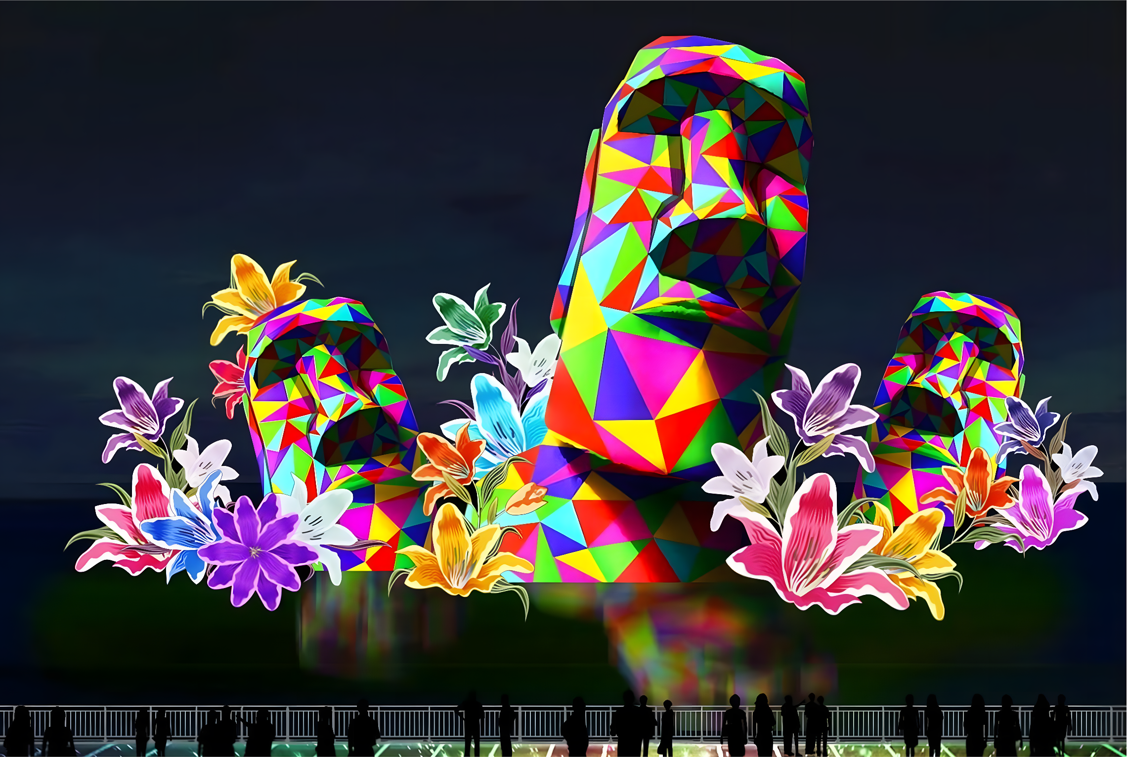 impresionantes esculturas iluminadas a mano, muchas de ellas de gran tamaño.