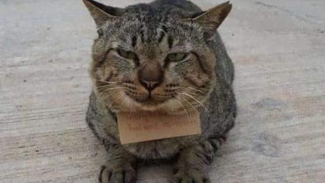 De acuerdo al relato de la dueña, que fue compartido en el grupo de Facebook del distrito tailandés de Chang Phuak, el felino llegó a su hogar con un cartel que decía “su gato no dejaba de mirar las caballas en mi tienda, así que le di tres”.