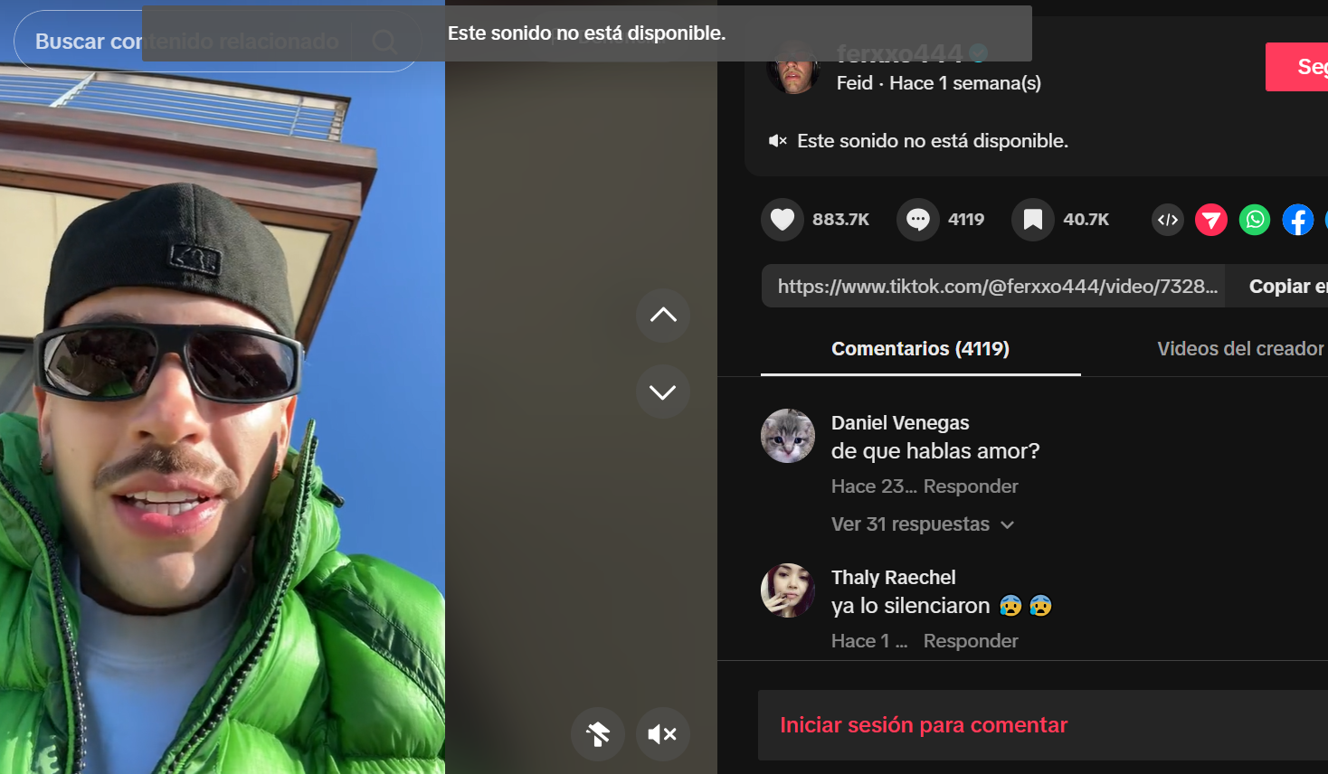 Sonido eliminado debido a restricciones de copyright", es la alerta que se ha emitido por la red social, sin embargo, la misma app