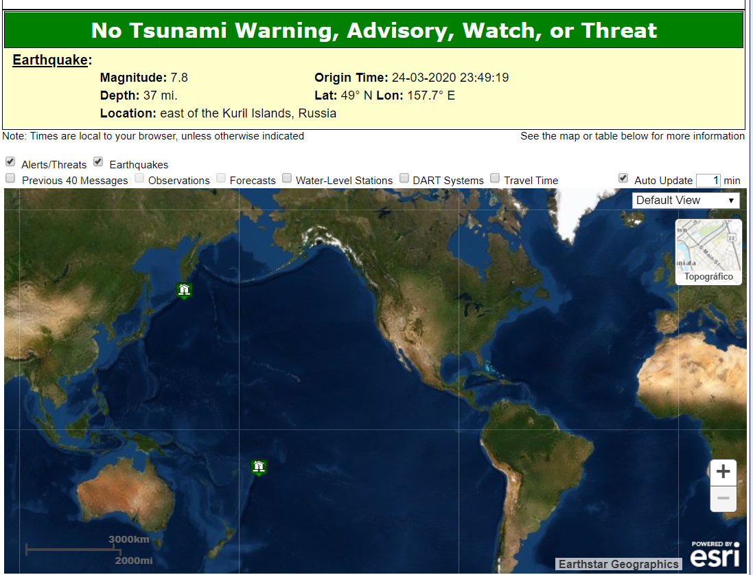 Una vez finalizado el proceso de modelación y análisis, se informara la posibilidad de amenaza de tsunami para las costas de Chile.— onemichile (@onemichile) March 25, 2020