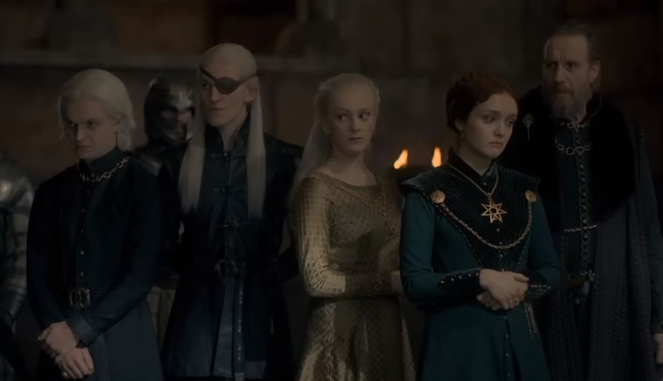 Luego de sufrir una cruel broma por parte de su hermano mayor, Aegon II, y sus sobrinos -hijos de la princesa Rhaenyra Targaryen-, Aemond se muestra decepcionado por no tener un dragón. Sin embargo, la reina Alicent lo confortó diciéndole que algún día él también poseería un ejemplar.