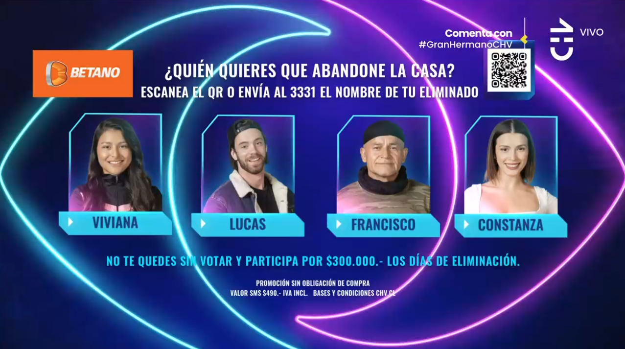 De esta manera, la placa de eliminación de esta semana quedó compuesta por: Viviana Acevedo, Lucas Crespo, Francisco Arenas y Constanza Capelli.No obstante, no todo está dicho ya que la noche del jueves el trío de líderes de la semana tendrá que ponerse de acuerdo para salvar a uno de los nominados.