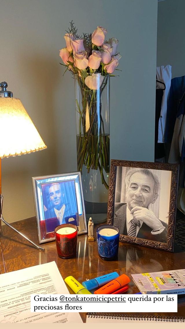 Instagram, la animadora de este año subió a sus historias una fotografía de lo que pareciera ser un altar, sin embargo, destacó un delicado ramo de rosas.