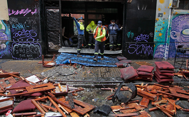 Con ayuda de camiones aljibe e hidrolavadoras, los funcionarios han centrado sus esfuerzos en las calles Blanco, Cochrane y Serrano, cerca de las dependencias del Sindicato de Estibadores del Puerto de Valparaíso.