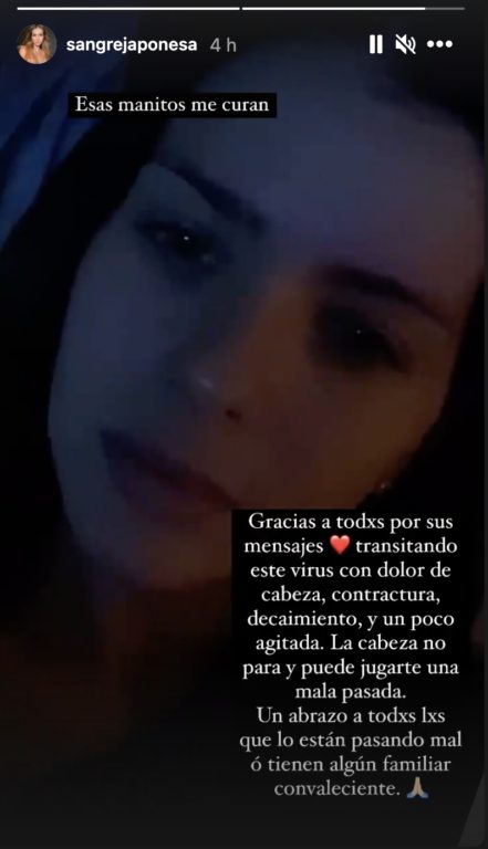 "Transitando este virus con dolor de cabeza, contractura, decaimiento y un poco agitada", escribió la modelo en sus Stories.