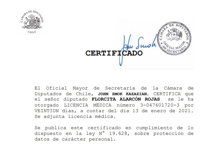 Este martes, la Cámara de Diputados y Diputadas confirmó que el parlamentario Raúl Alarcón, más conocido como Florcita Motuda, presentó una licencia médica que lo mantendrá ausente de sus labores hasta febrero.
