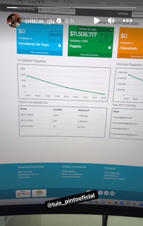 el fondo para Luis Pinto tiene $11.506.717. "Todo eso hay que hacérselo llegar al Luis, no sé como chu...", se le escucha decir al creador de contenido.