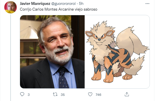 No obstante, el tuitero se arrepintió minutos más tarde con la decisión tomada con Montes, y lo comparó con un Arcanine (Pokémon de tipo fuego), calificandolo además de "viejo sabroso".