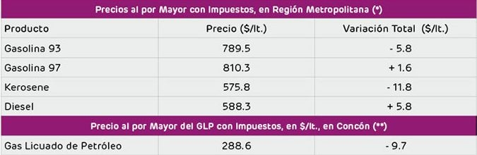 Asimismo, el kerosene y el gas licuado también bajarán su valor, en un -11,8 y -9,7 respectivamente.