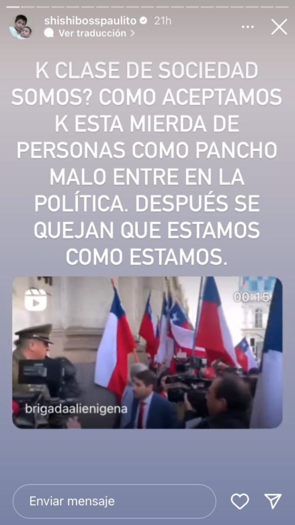 “¿Qué clase de sociedad somos? Cómo aceptamos que esta mier… de persona como Pancho Malo entre en la política. Después se quejan que estamos como estamos", fue el mensaje del trapero.