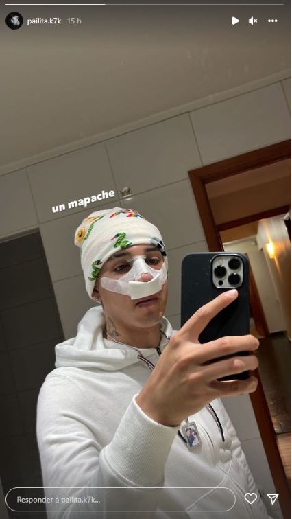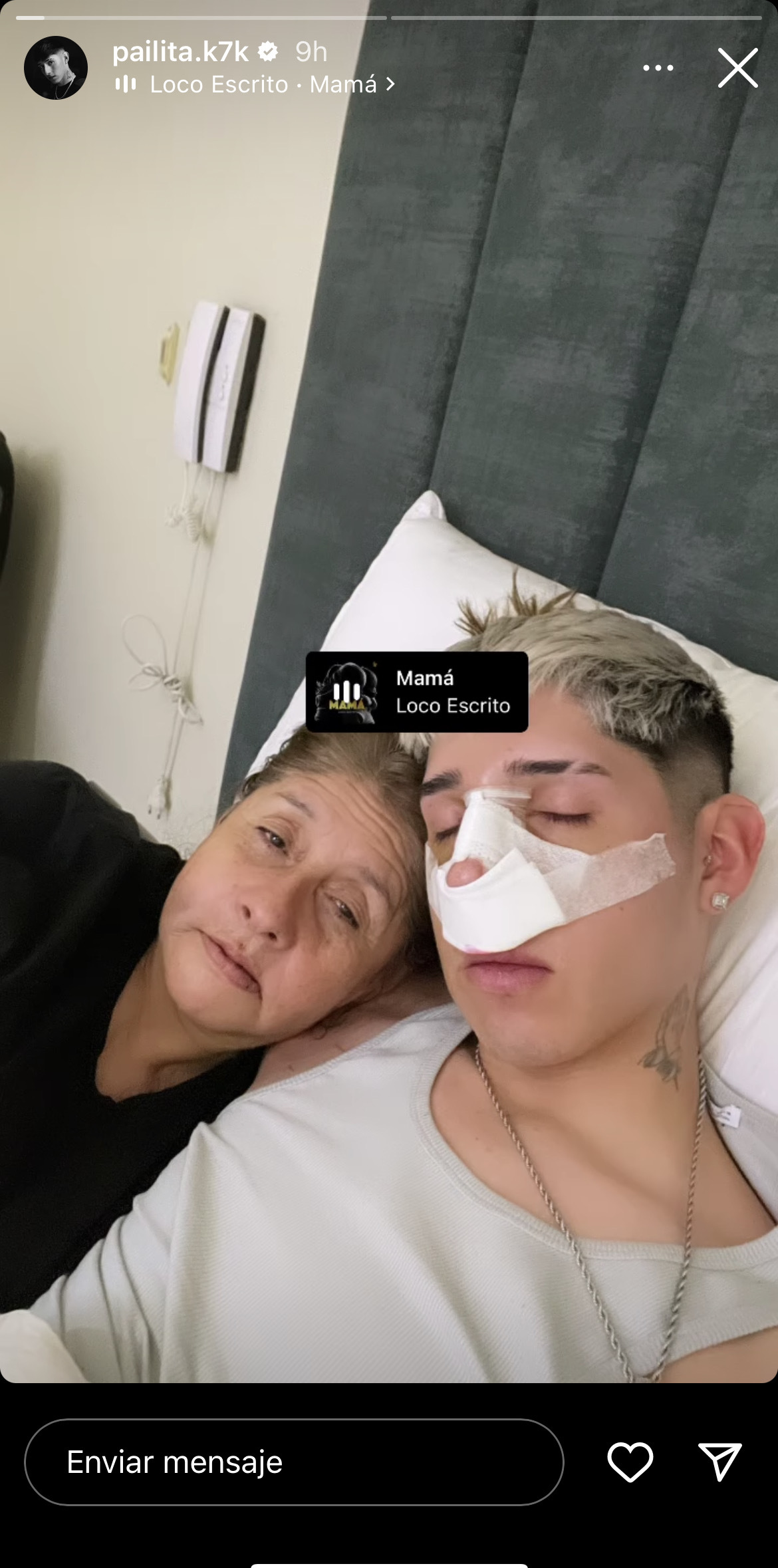 El artista urbano compartió una selfie tomada en su baño, dando cuenta de los vendajes que aún tiene en su rostro. Asimismo, subió una imagen junto a su madre, quien lo ha acompañado en este proceso de recuperación.