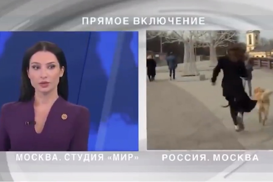 Según publicó el portal de noticias RT, quienes además compartieron el video del hecho, el can de nombre Martin saltó para arrebatarle el micrófono a una reportera de la cadena Mir, mientras comentaba la temperatura de Moscú en abril.