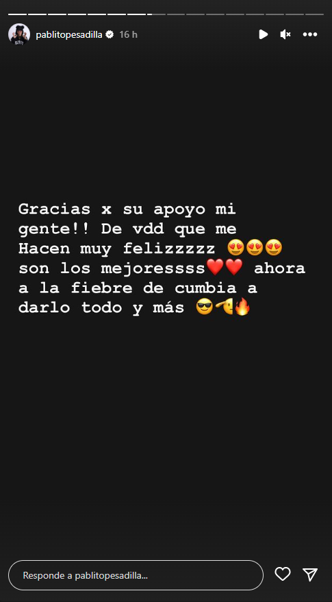 "Gracias por su apoyo mi gente. De verdad que me hacen muy feliz, son los mejores", escribió en sus redes sociales el músico, quien estará la próxima semana en la Teletón.