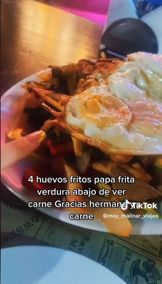 Tal fue el caso de una pareja argentina que acudió a un bar a probar la clásica chorrillana y compartió su experiencia en su cuenta de TikTok. "Estamos en un bar de la península y vamos a aprovechar para probar la chorrillana", señala la joven en el video. Según explica en el registro, el plato es para cuatro personas y trae carne de vaca, de pollo, huevo y papas fritas.