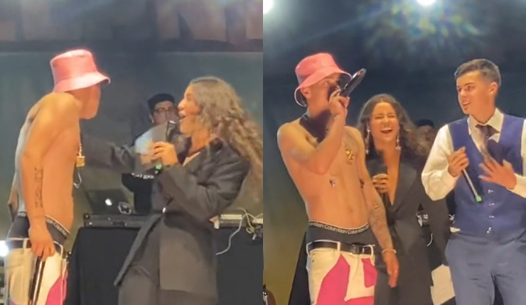 “¿Qué les pareció el Pailita? El AK perdón”, dijo la joven mientras se acercaba y abrazaba al artista talquino, al mismo tiempo que se escuchaban algunos abucheos y pifias de los presentes.