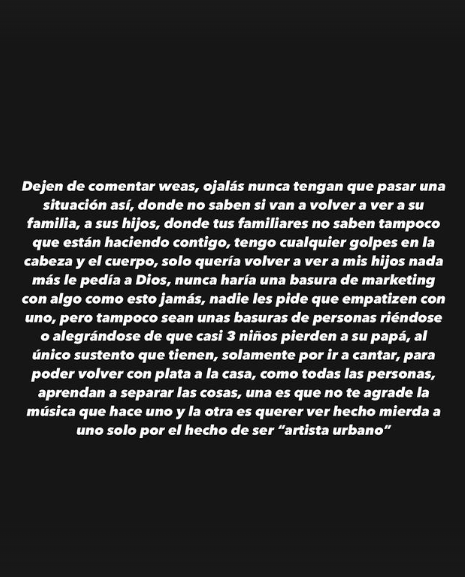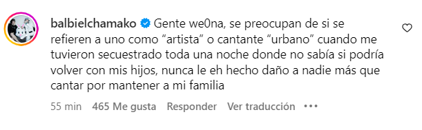 "Gente hueona, se preocupan de sí se refieren a uno como 'artista' o cantante 'urbano' cuando me tuvieron secuestrado toda una noche,